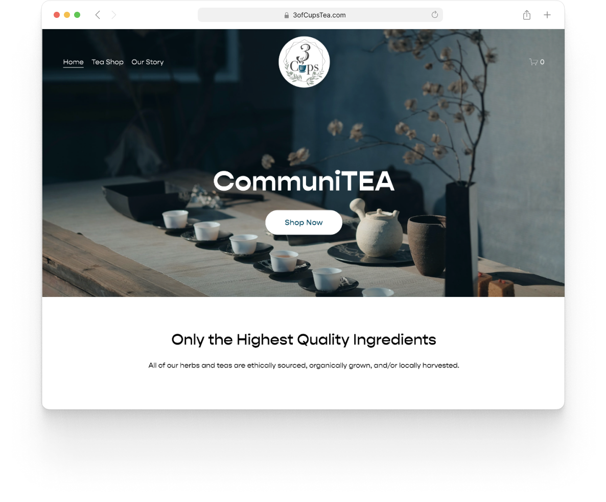 Client: 3 of Cups Tea — online-only specialty tea shop
